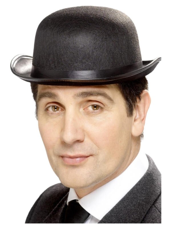 Elevate your style with our classic black bowler hat. Perfect for fancy dress parties or adding a dapper edge to your look.