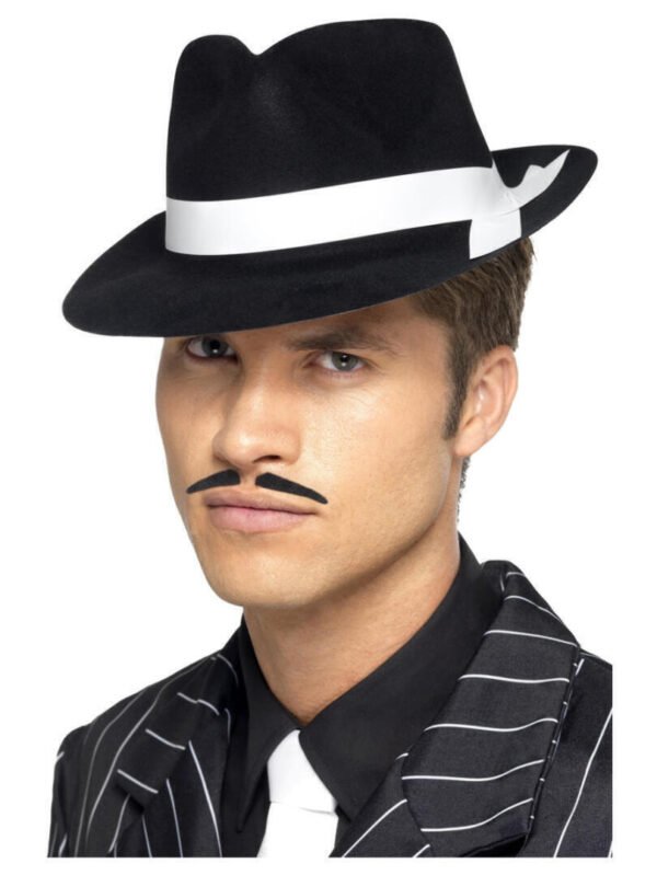 Command the room with our Classic Gangster Al Capone Hat, featuring a sophisticated black flocked finish with a contrasting white band. Ideal for Halloween, costume parties, and historical reenactments.