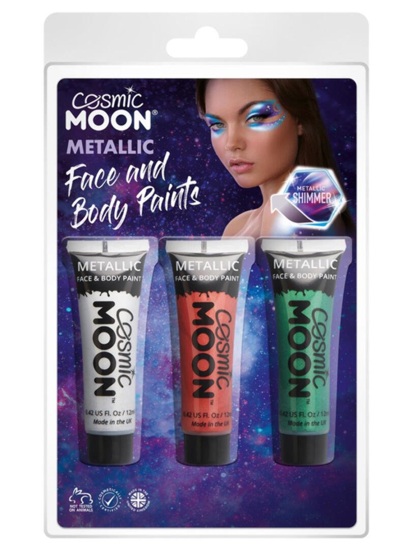 Perfect for themed parties, festivals, or Halloween, this metallic paint glides on smoothly and dries quickly for long-lasting wear. Get ready to shine bright like a star with our Celestial Galaxy Metallic Face & Body Paint.