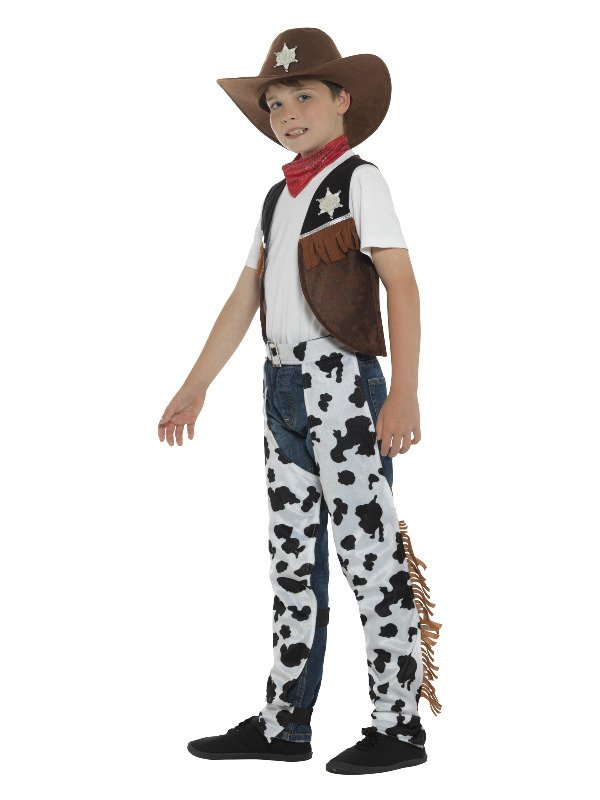 Texan Cowboy Costume, Brown, with Hat, Neck Tie, Waistcoat, Badge & Chaps