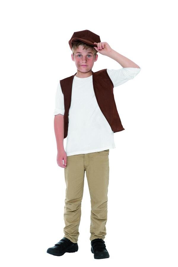 This detailed ensemble includes a weathered jacket, matching trousers, a flat cap, and a printed scarf for an authentic Victorian look. The high-quality materials and craftsmanship ensure durability and comfort for all-day wear. Embrace your inner pickpocket or orphaned street urchin with this unique and versatile costume set that will transport you to the cobblestone streets of old London.
