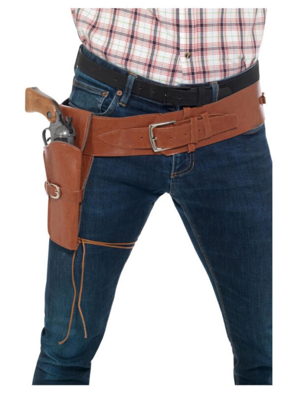 Get ready to draw with our Wild West Style Tan Leather Belt with Single Holster. Perfect for completing your cowboy costume for any party or event.